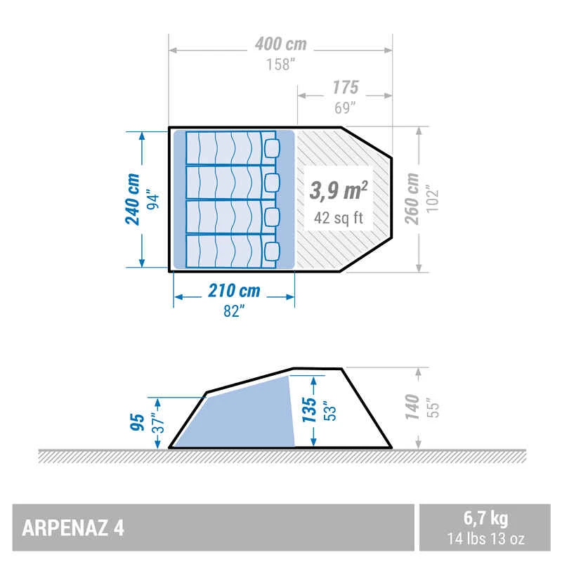 Quechua Tente à Arceaux De Camping – Arpenaz 4 – 4 Personnes – 1 Chambre